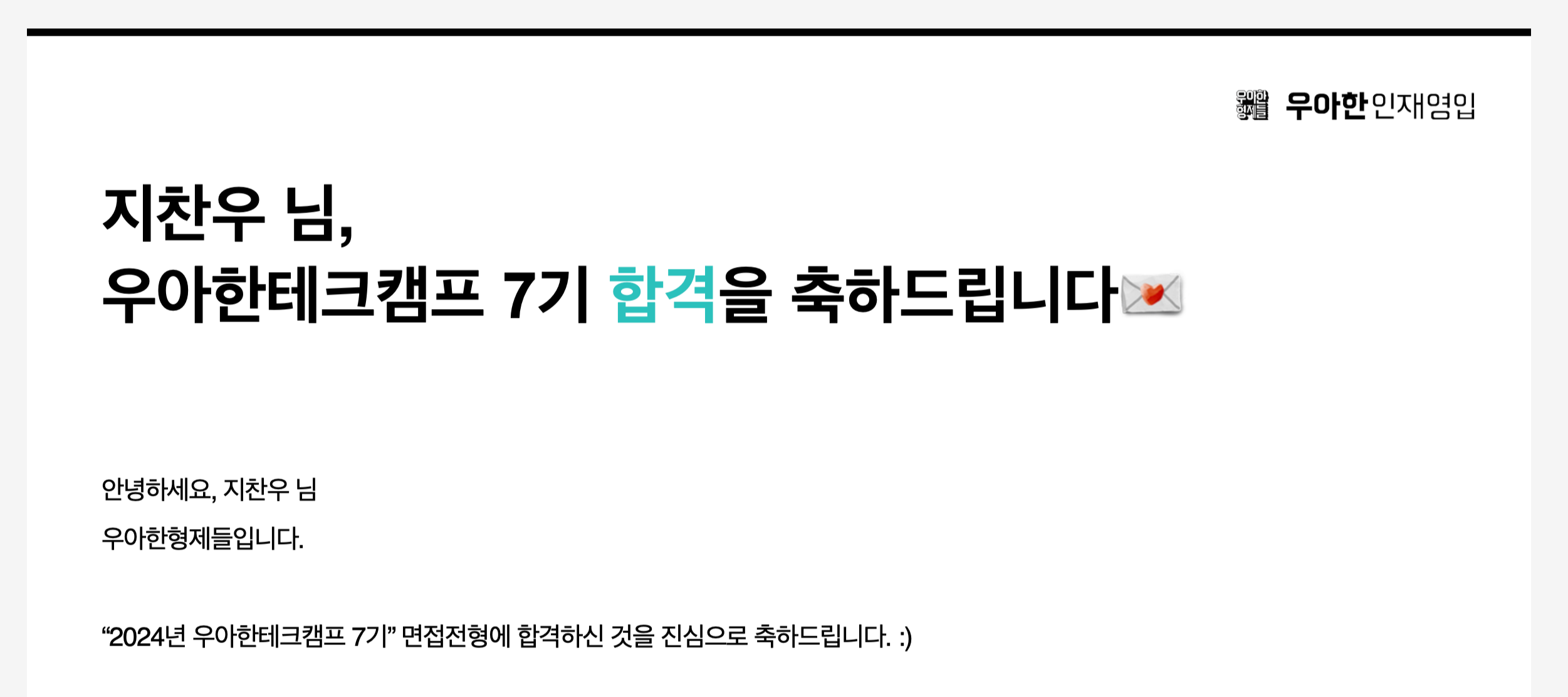 안녕하세요. 2024 우아한테크캠프 7기 백엔드/서버 분야에 최종 합격하게 되어 후기를 남깁니다.