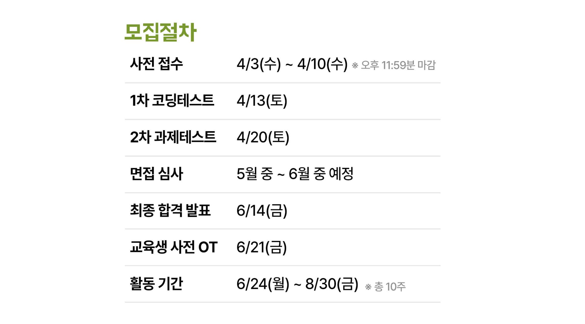 후기를 작성하는 이유는 우아한테크캠프 모집 과정에 대한 정보를 제공하는 것도 있지만, 실패가 두려운 분들께서 어떤 게 되었든 용기를 얻고 도전했으면 하는 마음도 있습니다. 여러분들도 무엇이든 도전하고 실패하기도 하며, 느리게나마 자신이 원하는 것에 가까워지길 바라면서 글을 마치겠습니다.