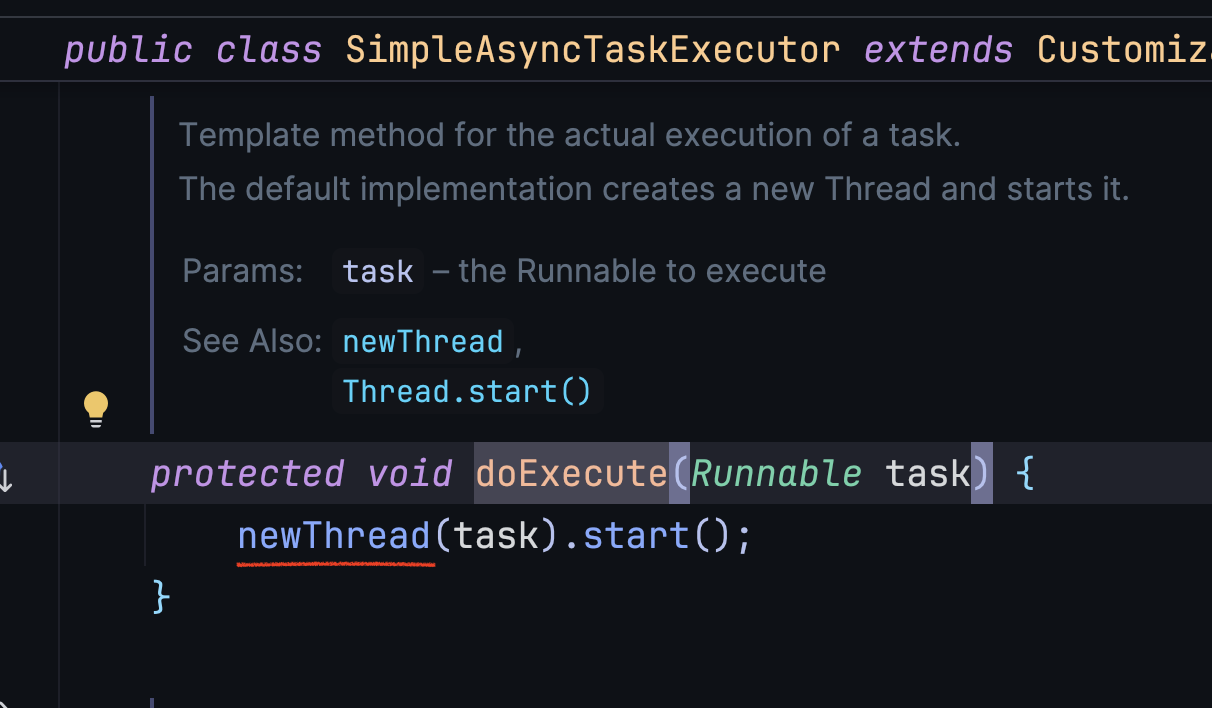 TaskExecutor taskExecutor = new SimpleAsyncTaskExecutor("SimpleAsync-");